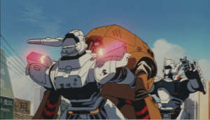 Patlabor er samlenavnet på en serie historier fortalt over ulike medier, utviklet i fellesskap av et team som kalte seg Headgear. De to filmene jeg skriver om her, fra henholdsvis 1989 og 1993, representerer det definitivt mest sofistikerte fra Patlabor-universet. I denne nære fremtiden har det blitt vanlig å bruke store menneskestyrte robotdrakter, såkalte labors, særlig i anleggsbransjen. Blant annet er de flittig brukt i det såkalte «Babylon Project», et enormt prosjekt for å demme opp Tokyo Bay og slik skape mer land for eiendomsutvikling o.l. (For øvrig ikke noen fremmed tanke, Japan har allerede flere kunstige øyer.) Men med den nye teknologien kommer også nye former for kriminalitet og ulykker, som krever at også politiet har en egen enhet for labors – patrol labors, eller patlabors. I Oshiis filmer er imidlertid gjerne de politiske omstendighetene rundt plottet litt mer virkelighetsnære enn man er vant til å se på film, så politiets patlabor-enhet er i virkeligheten ikke mer enn en svært underprioritert og stemoderlig behandlet avdeling som har hovedkvarter på en landfyllingsplass langt utenfor Tokyo sentrum.