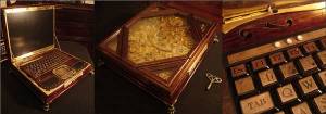 1. Steampunk-laptop: Lei av å taste på svart plastikk eller blank aluminium som ikke lenger står ut fra mengden? Da bør du ta en titt på disse steampunk laptopene som snart kommer i salg (til en rimelig stiv pris) fra en driftig kar som kaller seg Datamancer, selvutnevnt «jackass of all trades». På siden hans finner du også steampunk-tastaturer, stasjonære pc-er innebygd i victorianske kabinett og mye mer for den klassisk anlagte. Hvis ikke du kan skrive en historisk dameroman på denne, så kan du det ikke i det hele tatt. Takk til boingboing.net for tipset.