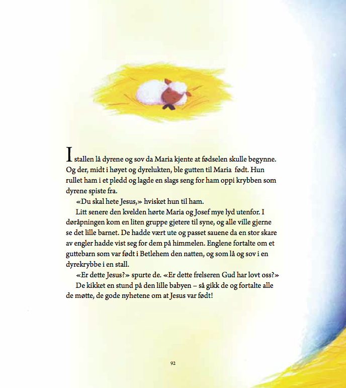 I våres ble jeg bibeloversetter. Jepp, Bibelen 2011 er så 2011. Derfor satte jeg i gang å oversette min egen Bibelen 2012, eller som den egentlig heter, Mine Bibelfortellinger. Det er en forholdsvis tradisjonell barnebibel for aldersgruppen 4–7 år, som først og fremst fokuserer på de mest kjente historiene. I tillegg til selve oversettelsen gjorde jeg også satsen (altså å sette teksten inn på sidene i InDesign, lage typografiske maler og tilpasse tekstflyten til bildene etc.).