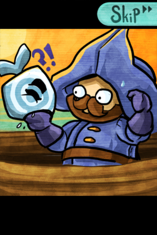 Mitt bidrag var som sagt bare å komme opp med noen små historiesegmenter som kunne brukes mellom levelene. Til slutt landet utviklerne dog på å renskjære konseptet, og å utelate nesten hele historiebiten, noe som var helt forståelig. Det som imidlertid gjenstår av mine innspill, er en liten tegneseriesnutt på begynnelsen som introduserer selve fiskemekanikken, hvordan krystallen funker. Resultatet, en slags blanding av tegneserie og tegnefilm, har blitt veldig artig synes jeg, og jeg tror den gir et godt bidrag til å introdusere verdenen og spillets karakter.