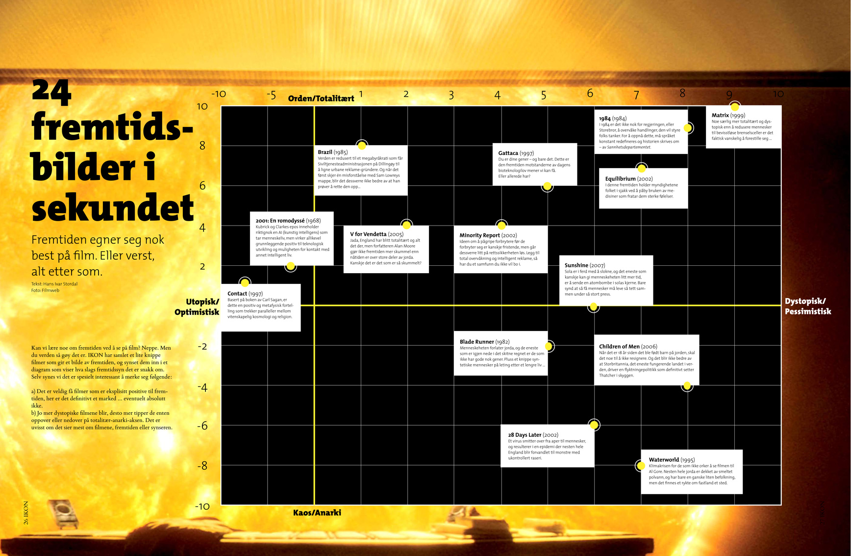 Dette oppslaget ble først publisert i Studentmagasinet IKON 4/2008, et nummer med temaet «Fremtiden». Kommenter gjerne hvis du har forslag til andre filmer som burde vært med på diagrammet, og hvor de skulle vært plassert.