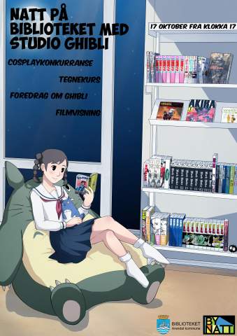I morgen, torsdag 17. oktober er jeg invitert til å holde foredrag om Studio Ghibli og Hayao Miyazaki på Arendal bibliotek, som del av deres animerelaterte helaftens arrangement Natt på biblioteket med Studio Ghibli. Forrige gang jeg holdt foredrag som del av et arrangement på Arendal bibliotek, var det møtt fram en stor gjeng med interesserte, deriblant en betydelig gruppe cosplayere som konkurrerte, og arrangørene var veldig fornøyde med interessen og mottakelsen arrangementet fikk, både i og utenfor målgruppen.