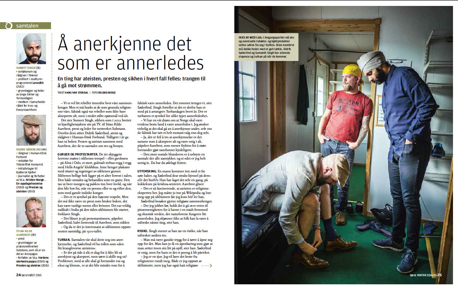 Dette religionsdialogintervjuet ble først publisert i bladet Tørst 2/2015, en utgave med temaet «anerkjennelse». Tørst blir utgitt av Areopagos. Foto var ved Erlend Berge.