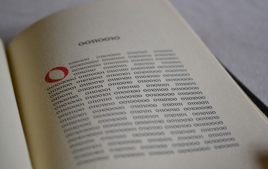 4. Bloggen BoingBoing har gjort et intervju med bokbinderen Michael Greer om bokbinding og om hvorfor noen lærer seg et slikt utdøende håndverk i dagens digitale samfunn. De snakker også om hans mildt sagt sære prosjekt Binary Genesis, som er en innbundet, fysisk bok som inneholder 1. Mosebok skrevet på binær kode, altså som nuller og enere. Boken er satt, designet og trykket for å minne om de tidlige trykte biblene.