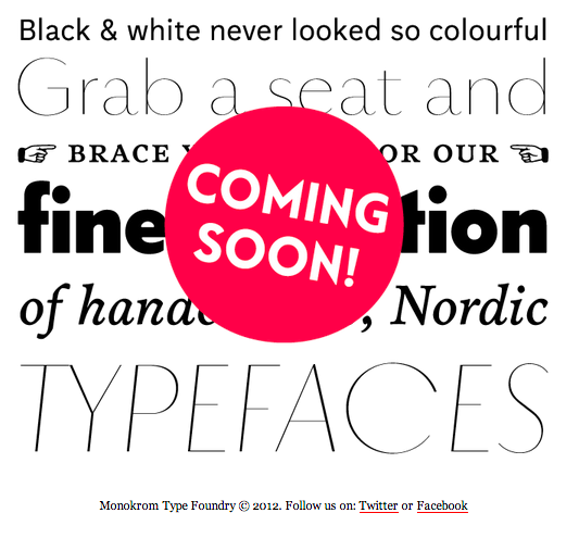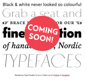 Jeg har gledet meg til å fortelle om dette, men har ventet til tiden var moden, noe den er nå. Noen av dere vet at jeg ikke bare interesserer meg for tekster, men også for selve bokstavene de er skrevet med, typografi og skriftdesign. Vel … nå får jeg endelig tatt denne interessen mer på alvor. Jeg er nemlig i disse dager med på å lansere et flunka nytt skriftforlag (eller fontforlag, som mange kanskje vil si): Monokrom Type Foundry. « Read the rest of this entry »