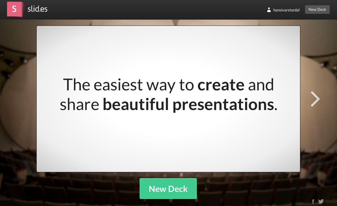 La meg introdusere Slid.es (tidligere kjent som Rvl.io). Dette er et HTML- og javascript-basert presentasjonsverktøy på nett. Funksjonene er strippet ned til et minimum, med en enkel og ren og intuitiv design. 95 % av brukerne vil klare seg fint med de få, enkle designmalene som tilbys, og de resterende kan få fikle med HTML som de selv vil. En enkel introduksjon finner du her. « Read the rest of this entry »
