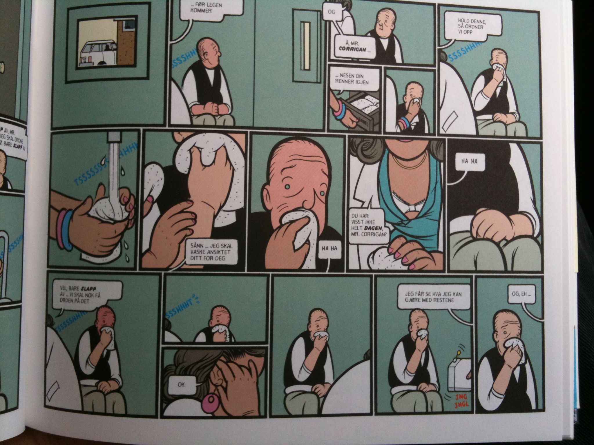 Det skal også legges til at den norske versjonen, grafisk tilrettelagt av årets norske Sproingvinner Sindre W. Goksøyr, gjengir alt det typografiske og visuelle så perfekt som det overhodet kan tenkes å gjøre, og at minst en kvartpart av denne bokens Sproingpris i så måte tilfaller ham. At sidene egentlig skulle vært minst dobbelt så store for at bobleteksten skulle vært uanstrengt leselig, er ikke noe de norske utgiverne har ansvaret for – det ville dessuten dessverre ha gjort boken uhåndterlig stor.